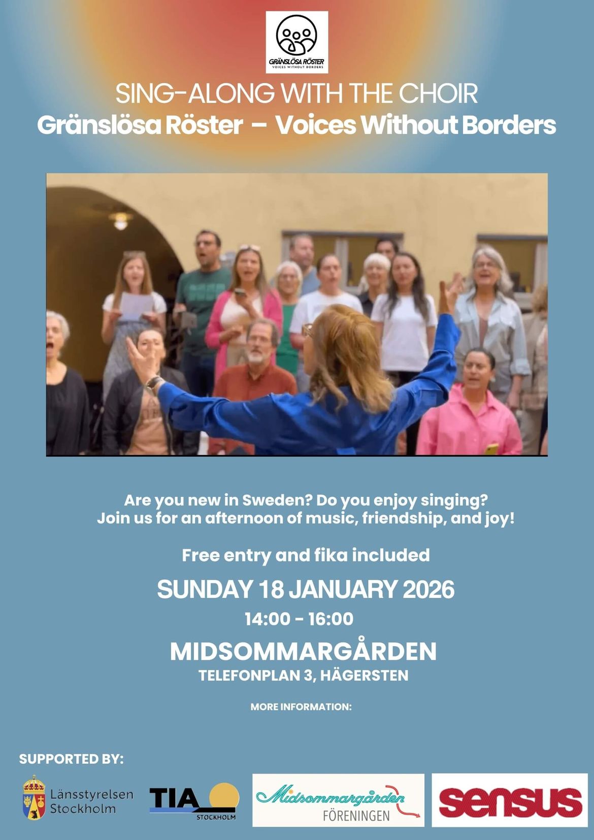 Evenemanget genomförs i samarbete med och med stöd av Midsommargården, TIA Stockholm och Länsstyrelsen Stockholm, i en varm och inkluderande gemenskap där vi sjunger tillsammans.